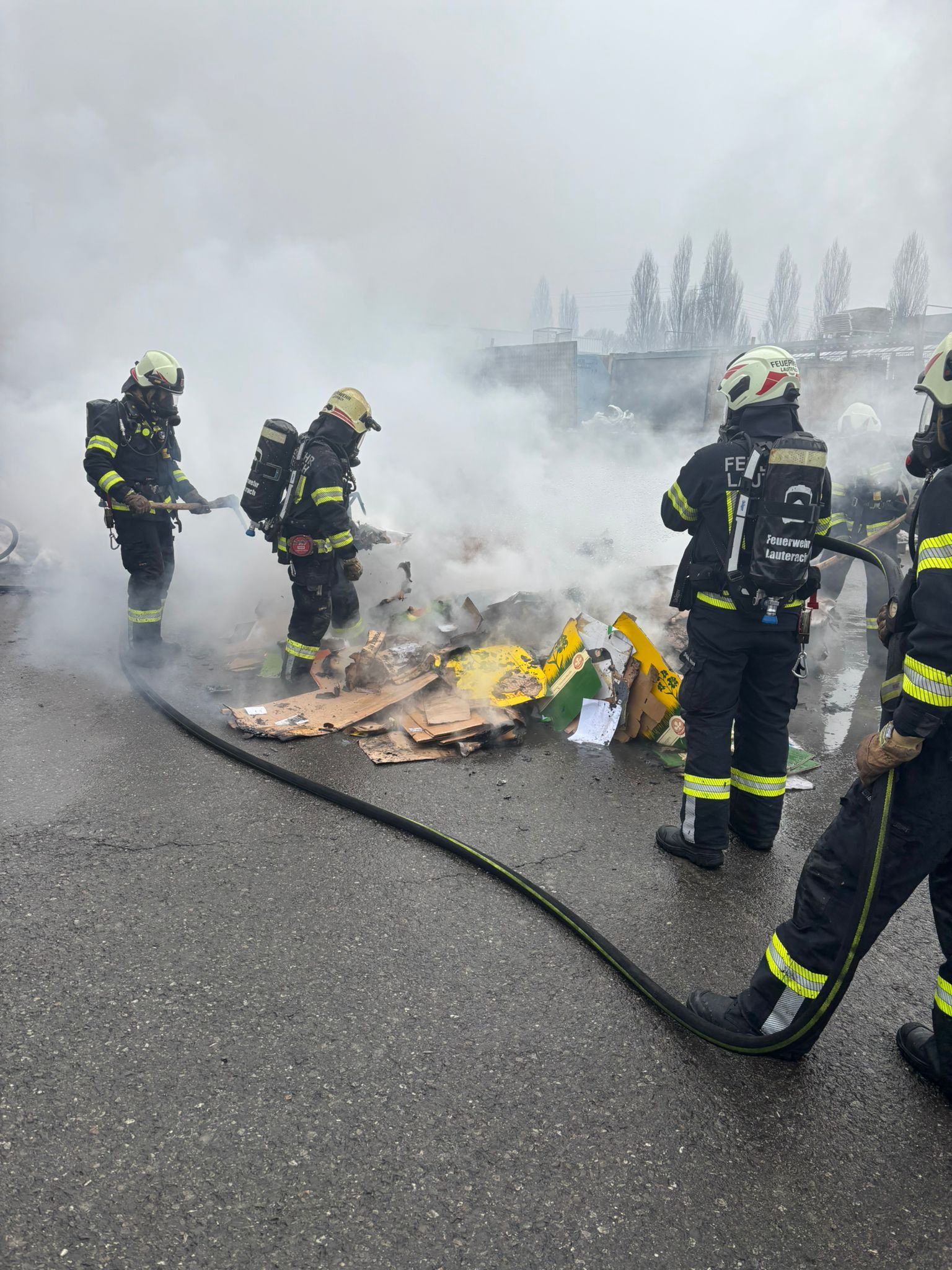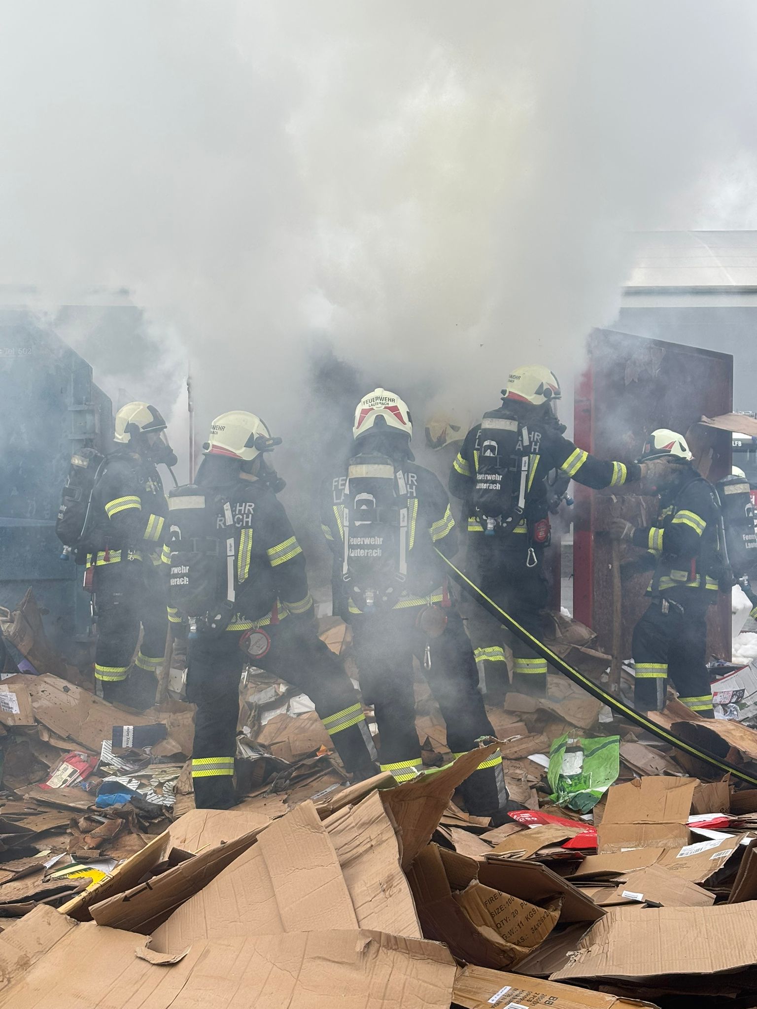 | Alarmtext: | LAUTERACH SCHEIBENSTRASSE 2 Baywa Lager 3 < Im Container brennt die Papierpresse |