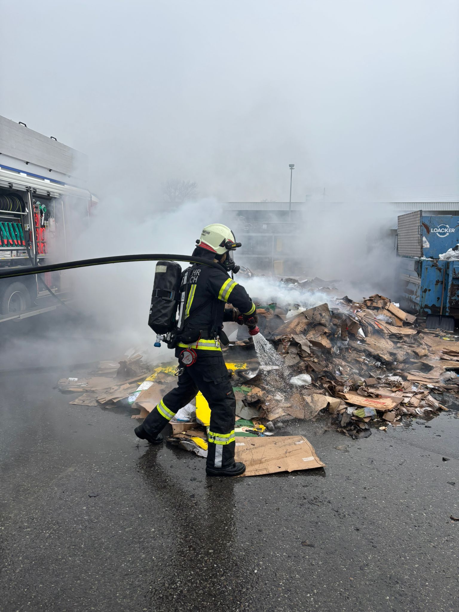 Ein Presscontainer mit Papier hatte am 20.01.2026 gegen Mittag Feuer gefangen. Wir kippten den Container aus und löschten diesen anschließend.