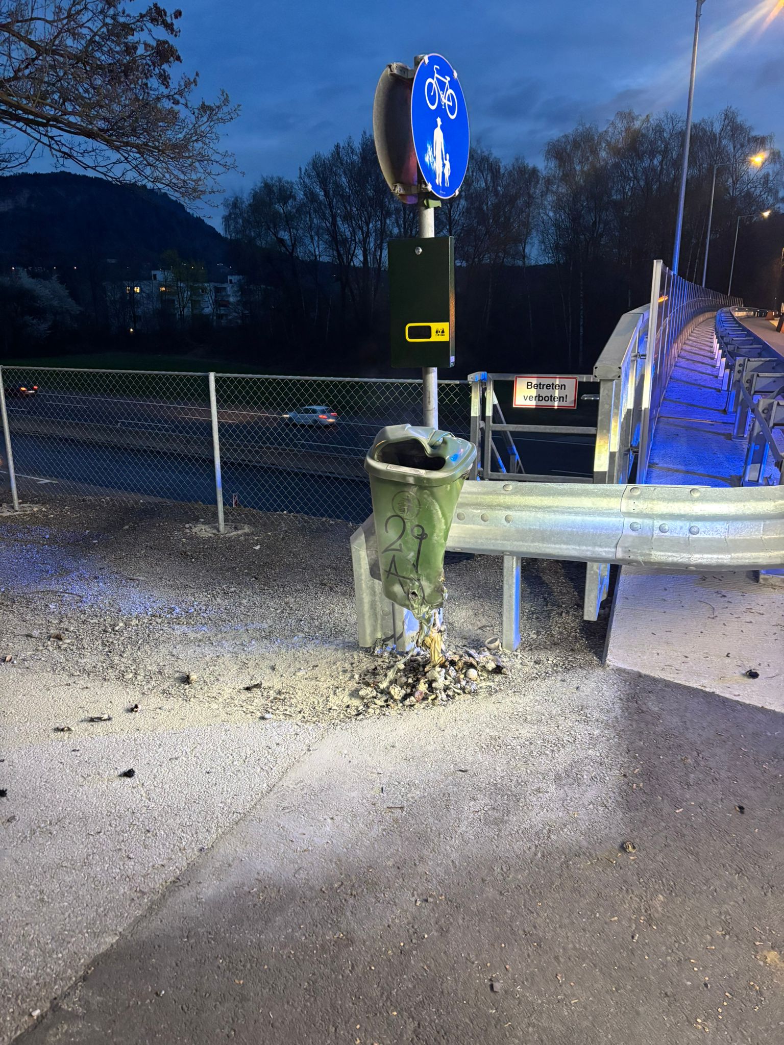 Ein öffentlicher Müllkübel fing aus ungeklärter Ursache Feuer.