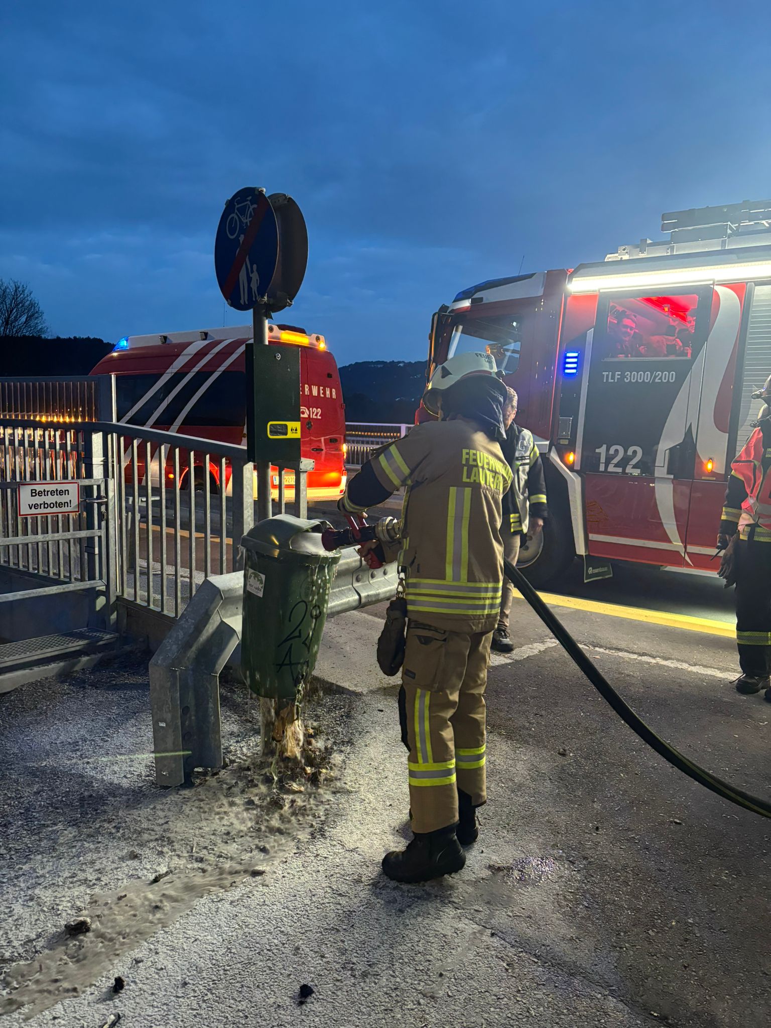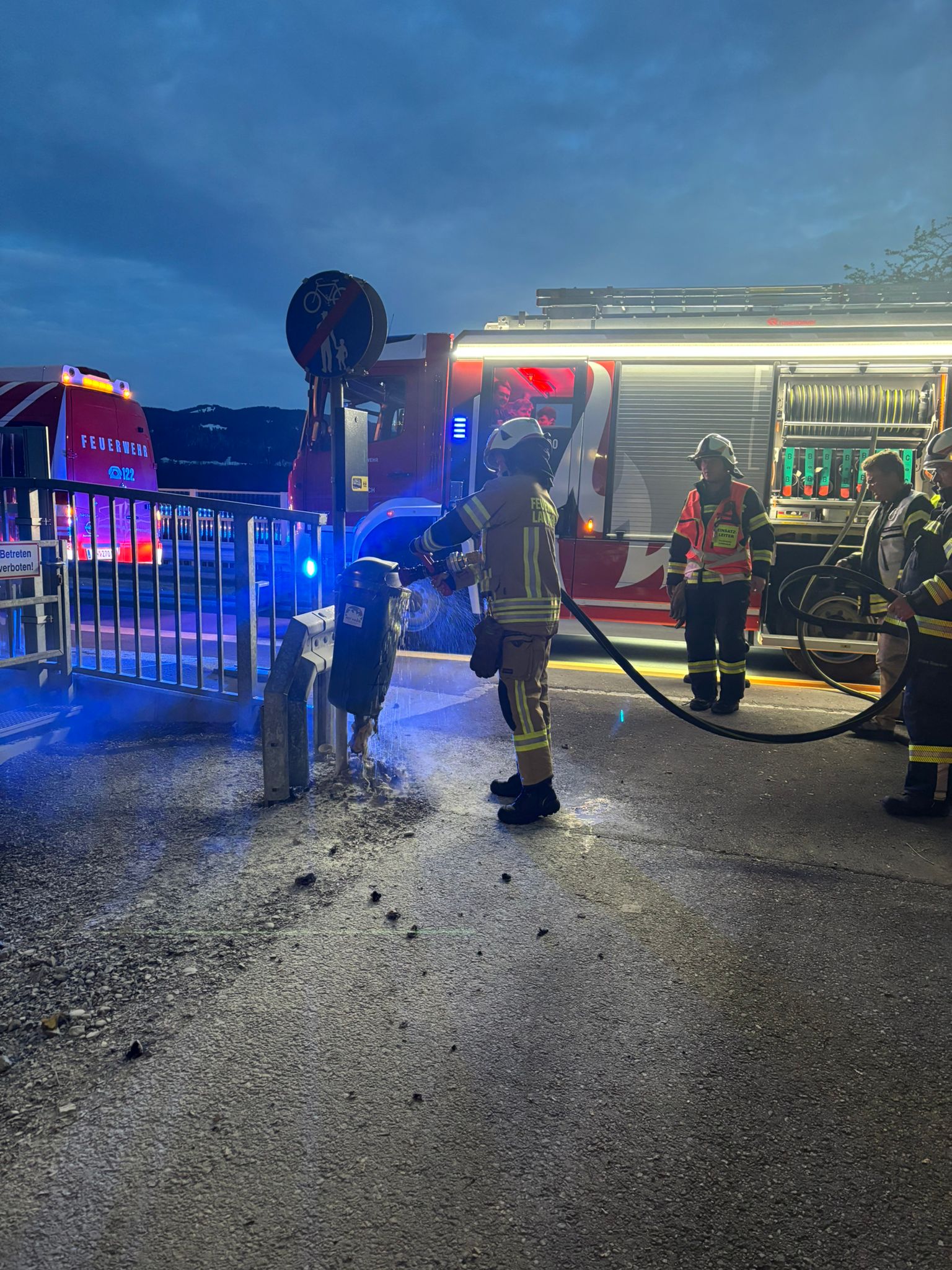 kurz vor Autobahnbrücke [Containerbrand] – Polizei auf Anfahrt